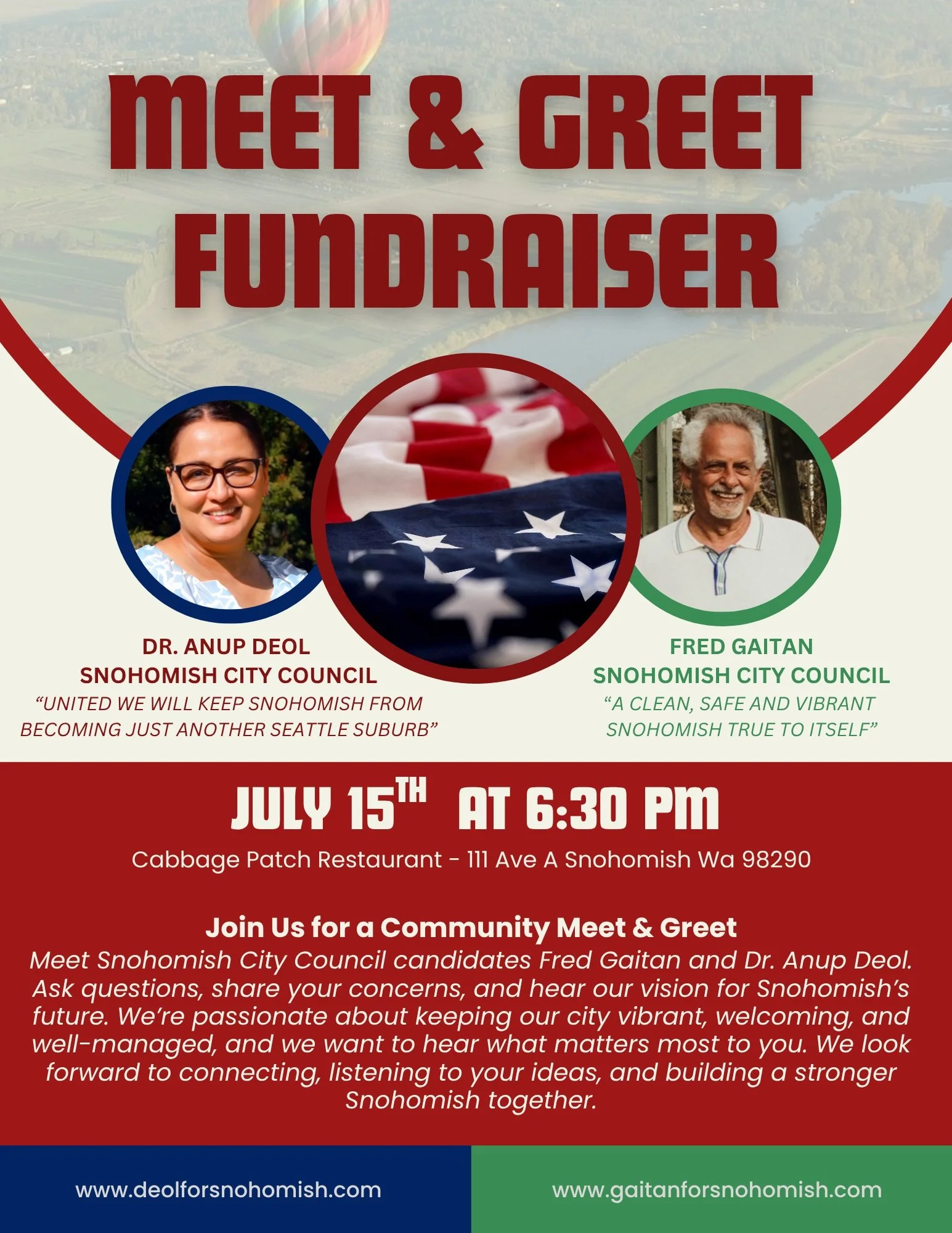 Come ask questions, share your concerns, and hear our vision for Snohomish’s future. We're committed to keeping our city’s historic small-town charm vibrant and thriving—guided by common sense and responsible management.